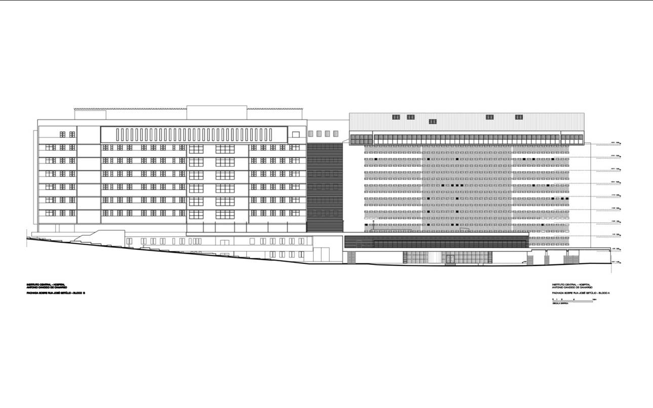 Assim, o projeto é composto pela restauração das fachadas dos blocos A, C e D (objetos do tombamento), resgatando a imagem inicial do conjunto, e pelo redesenho das fachadas do bloco B e das circulações/ligações com o bloco A e a criação de um novo volume para a circulação vertical na fachada leste bloco A.