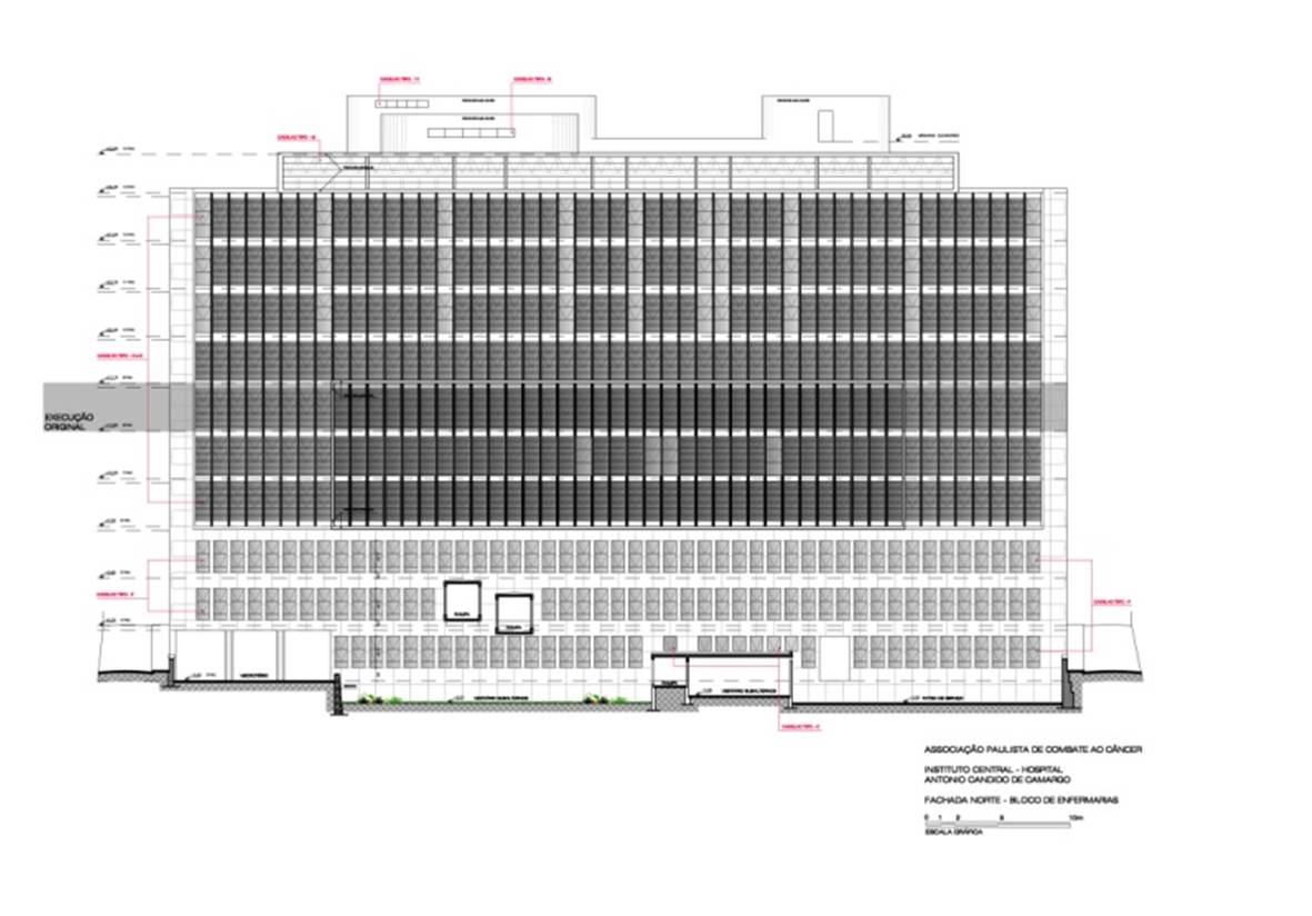 As fachadas serão restauradas, com a retirada dos aparelhos de ar condicionado e com a recuperação das tipologias das esquadrias seguindo o projeto original, porém sem as persianas de madeira – fachada norte dos Blocos A e C – serão substituídas por vidro duplo com persianas, de modo a garantir a eficiência acústica e isolamento térmico.